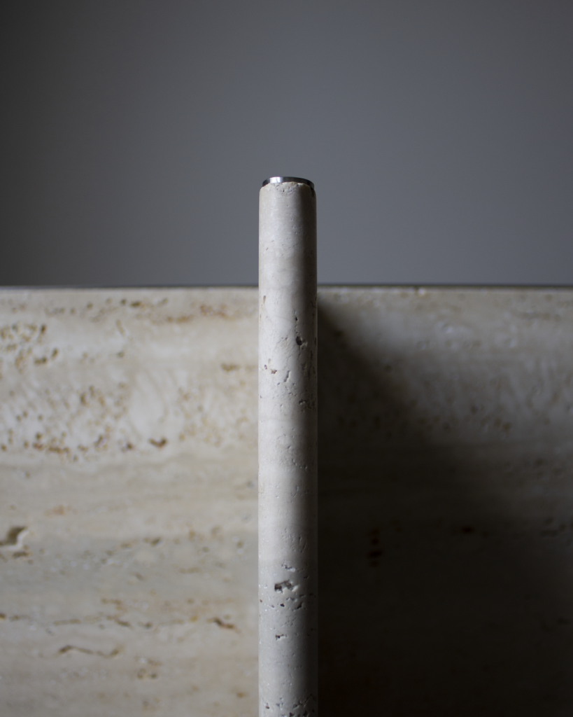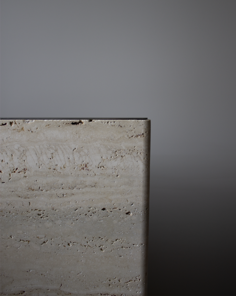 Материалы:  травертин, нержавеющая сталь.